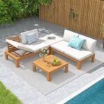 6Pcs Acacia Wood Patio Furniture Outdoor Sectional Sofa Set with Adjustable Armrest, FSC Certified L-Shaped Patio Set