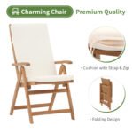 OC ORANGE-CASUAL 2Pcs Foldable & Adjustable Acacia Wood Patio Dining Chairs Outdoor Reclining Chairs with Cushions
