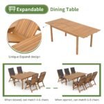 7 pcs Outdoor FSC Certified Acacia Wood Dining Set, 6 Foldable Reclining Chair and Extendable Dining Table
