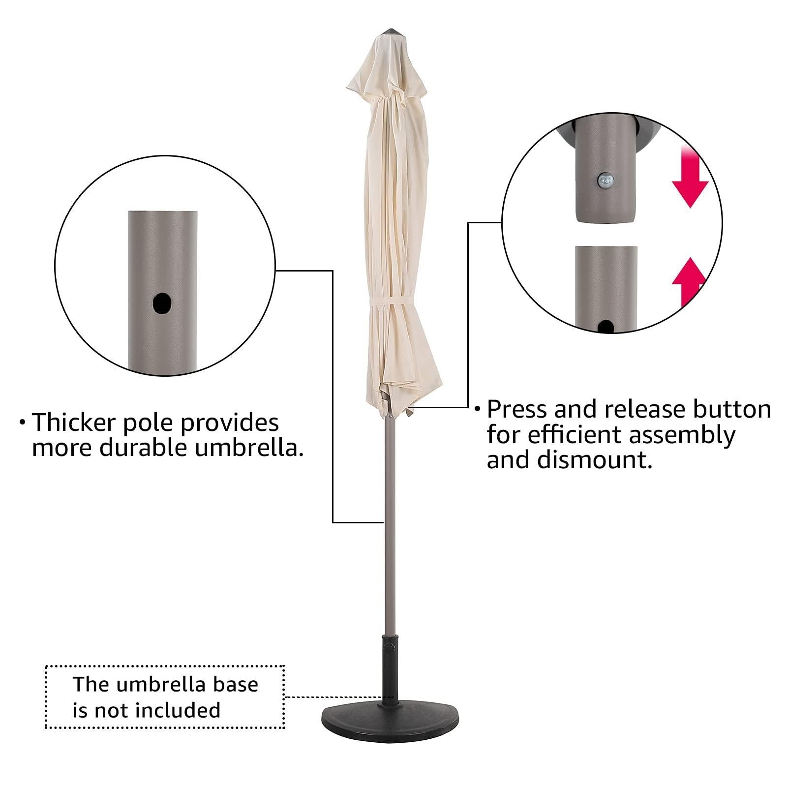 - Durable Fabric-Made of a water/UV-resistant, breathable, light filtering polyester fabric, with a steel frame and air vent that provides optimal wind resistance to keep your umbrella in place. Seamed ribbon for better protection when it is closed