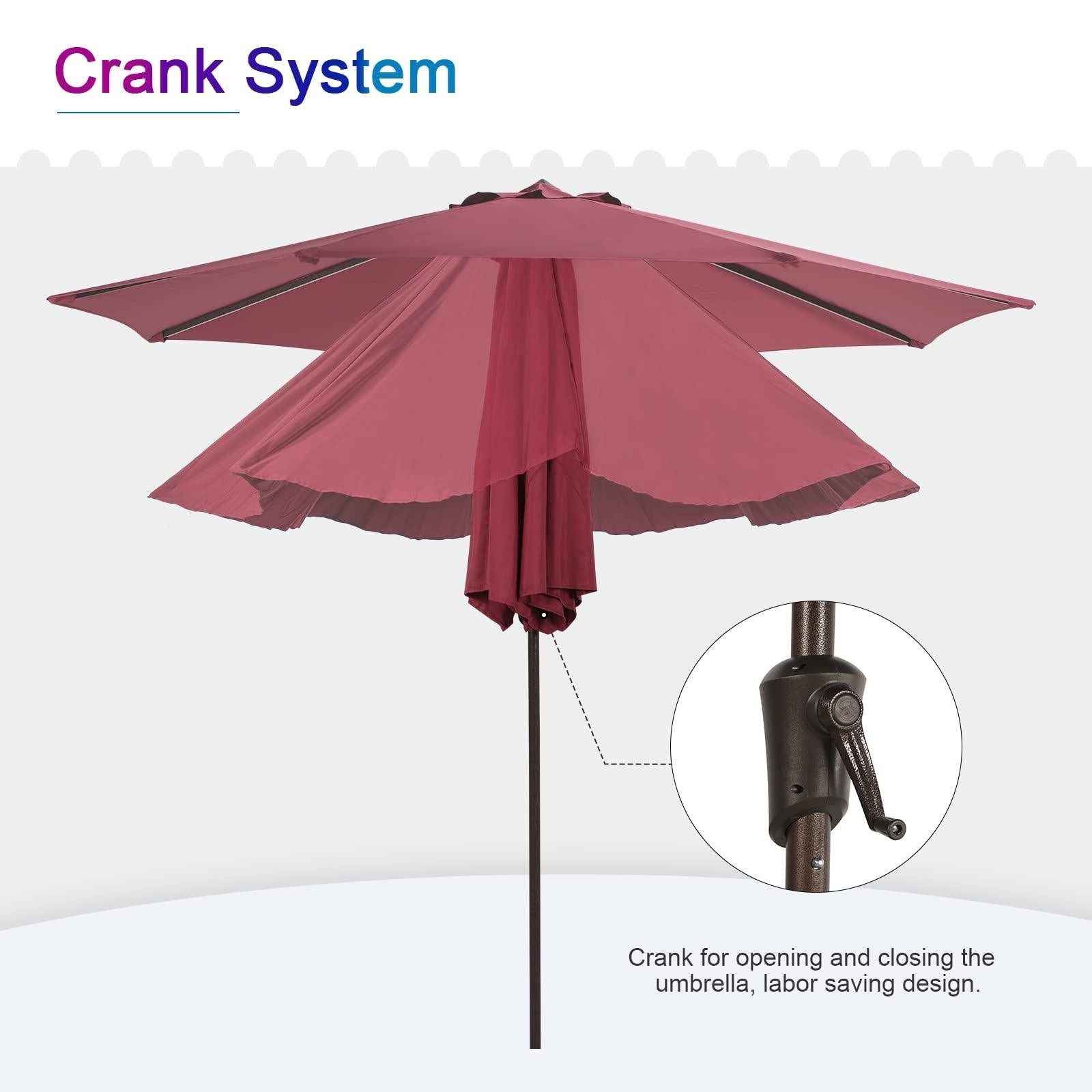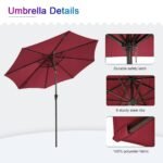 Summer is just around the corner for some of us and nothing says suitable to enjoy a relaxing afternoon outdoor like collocating a lovely 9ft patio umbrella. This patio umbrella boasts a heavy-duty steel pole and 8 ribs, which are sturdy and durable. Features functional design such as tilt mechanism and crank system allowing to adjust the outdoor sun umbrella to the perfect angle. The wind-vent at the top of polyester canopy helps add stability. Ideal for multiple outdoor occasions.