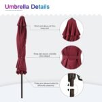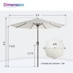 - 9 Feet Diameter-This patio umbrella is wide enough to shade your 60″ round, square, or rectangle table with 6 to 8 chairs. Ideal for both commercial and residential locations such as markets, restaurants, porch, decks, yards, balconies, pools, and any other outdoor areas