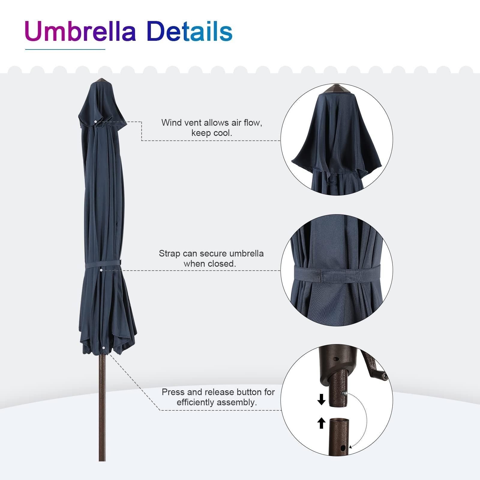 Made with durable steel frame and 8 sturdy ribs that ensure to enjoy the outdoor umbrella for years. |