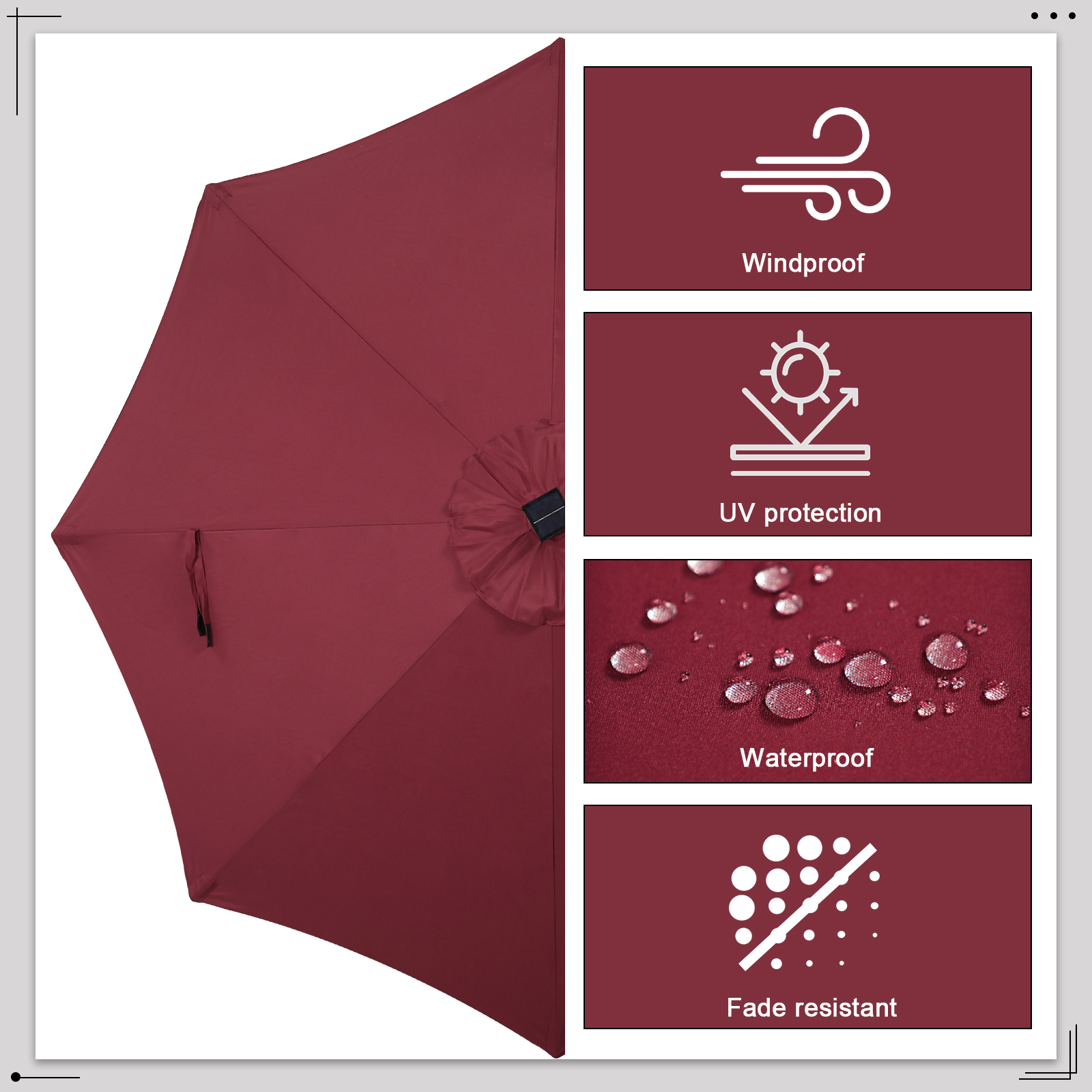 | Umbrella Type | Market umbrella with solar lights |