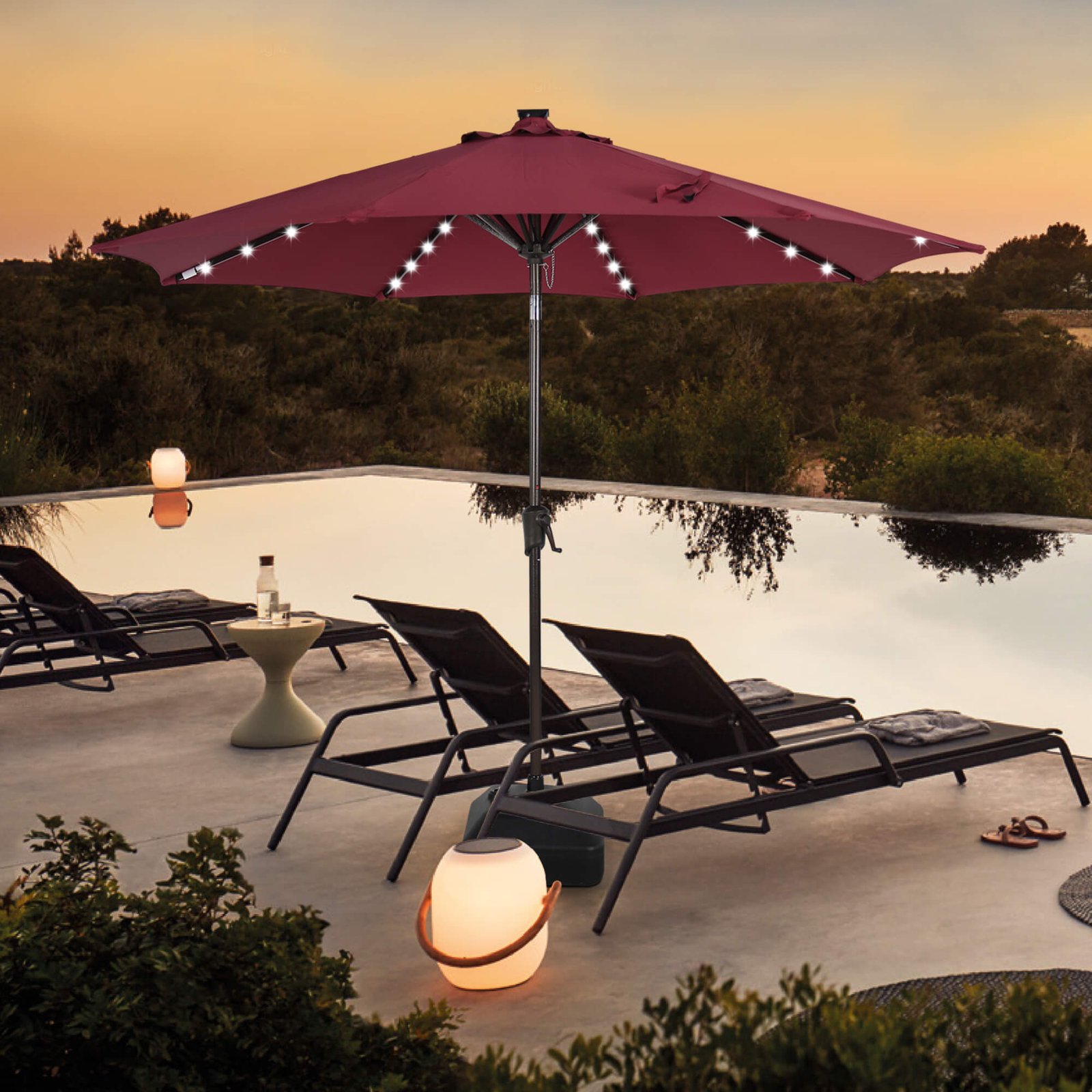 | Umbrella Type | Market umbrella with solar lights |