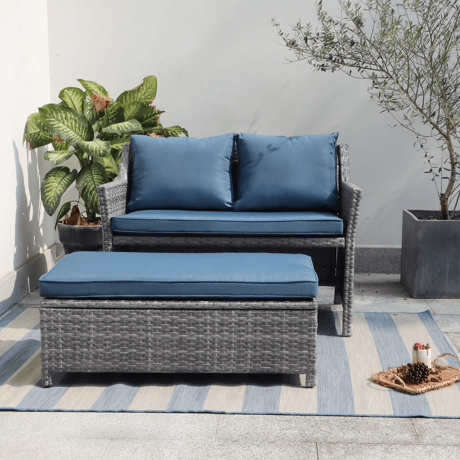 - Quick Assembly–Package Includes 1 x Loveseat;1 x Coffee Table; 2 x seat cushions and 2 x pillows. Assembly is easy with included clear instructions and necessary hardware.
