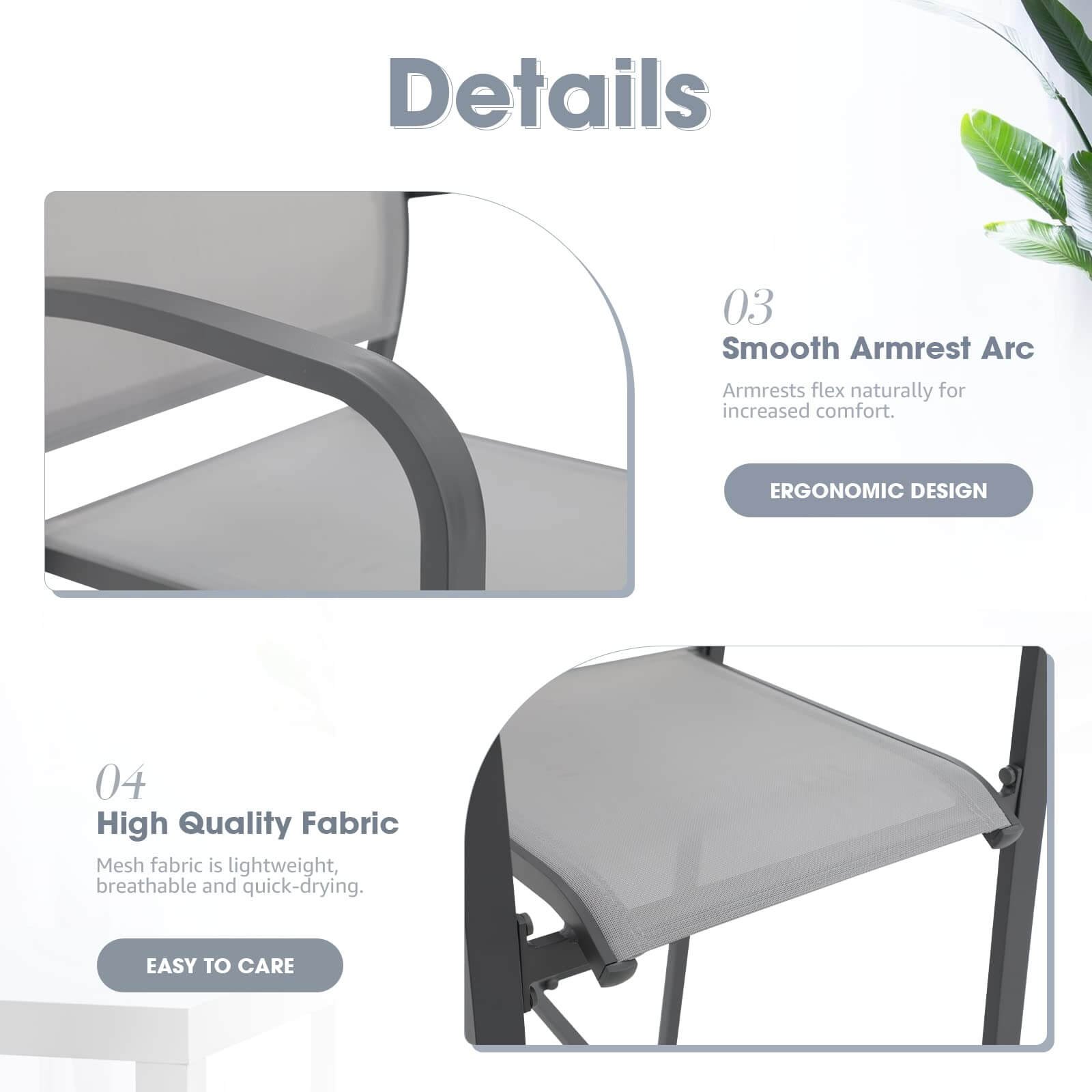 - Sturdy Structure – The high-top patio chair sits on I trestle base with four feet that provide sturdy support, not only offering a sleek, minimalistic look but also providing a stable structure. The balcony dining chair features a high back and sturdy footrest with non-slip plastic pads, inviting you to get comfortable.