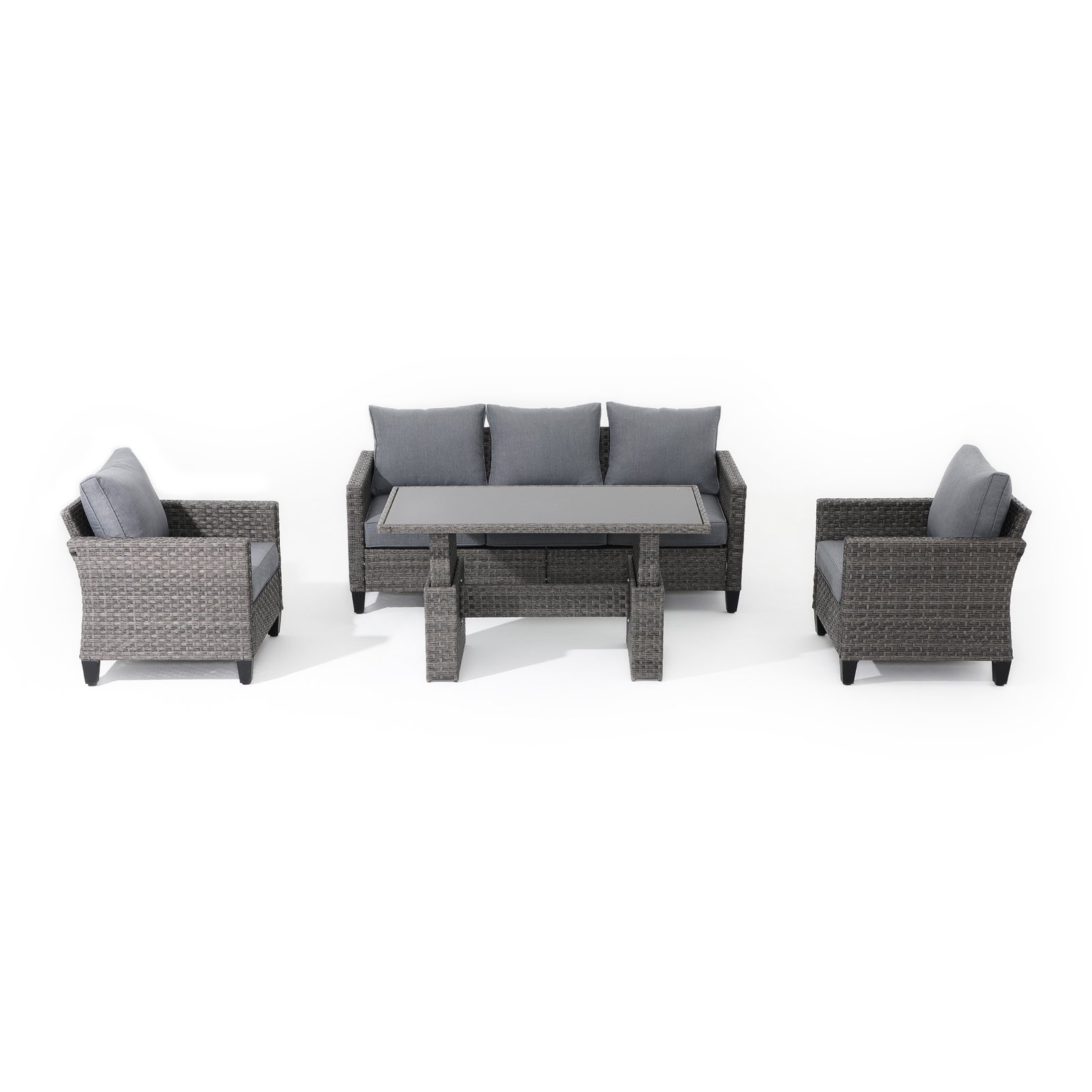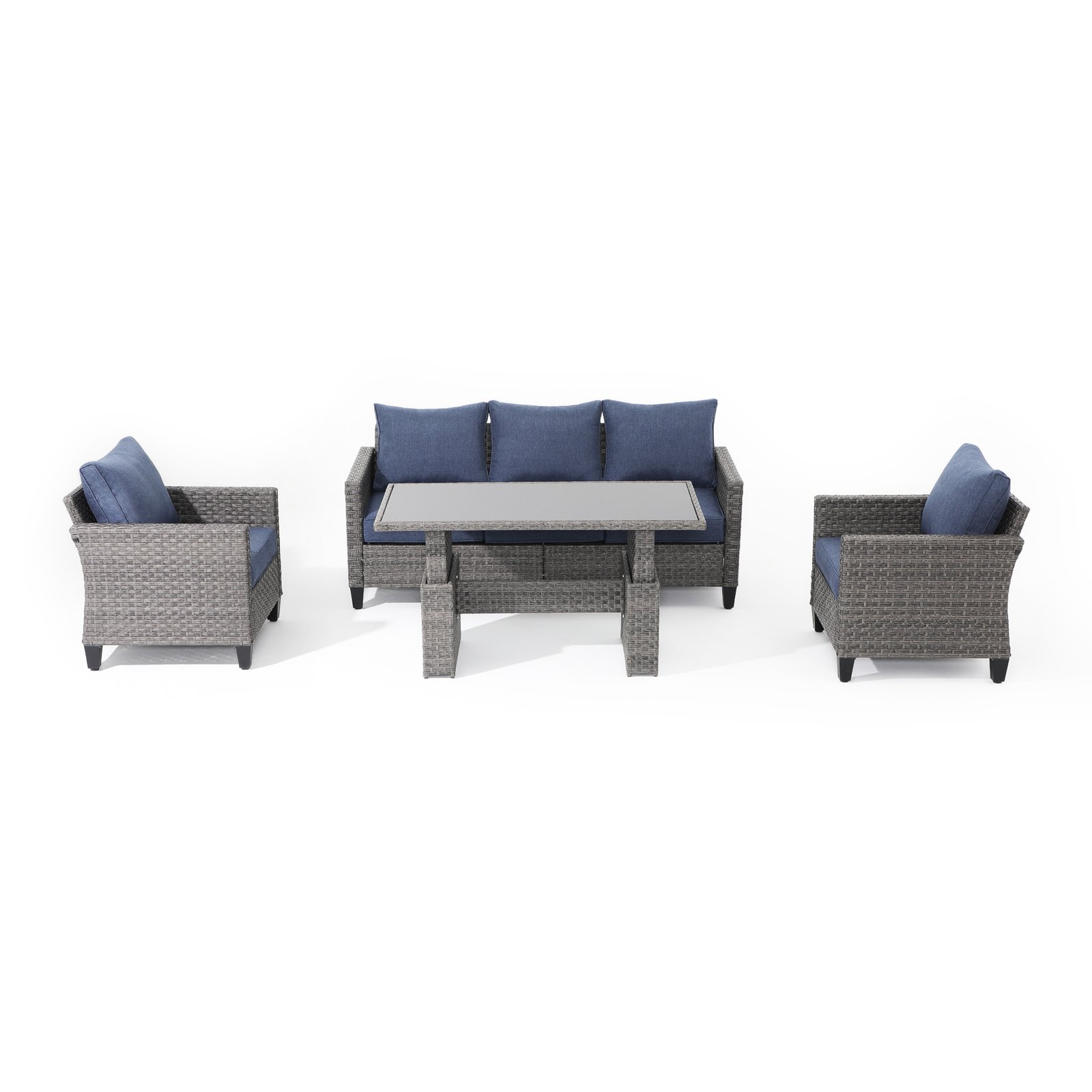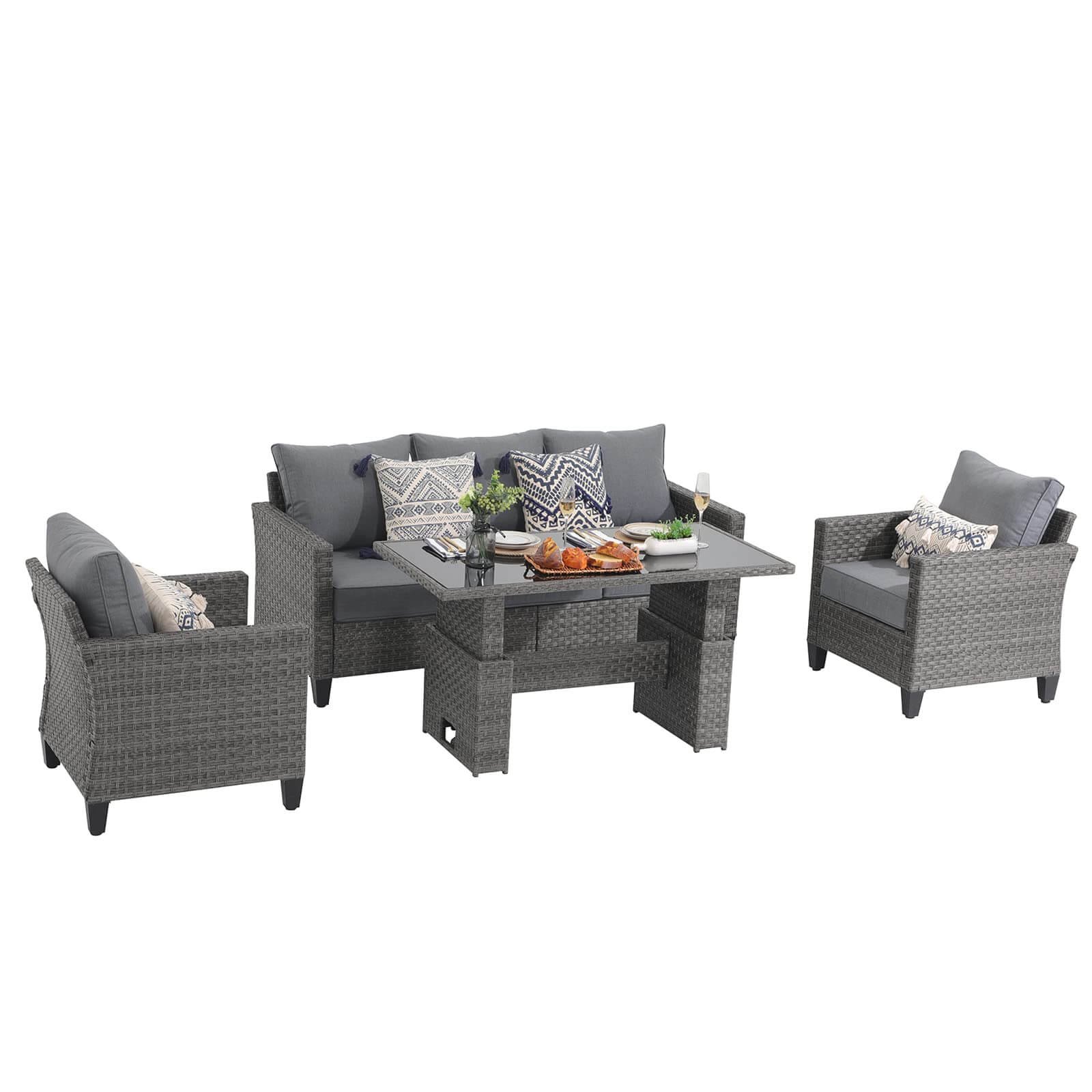 Wicker Outdoor Conversation Set with Lift-top Table Patio Sofa and Dining Table Set