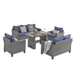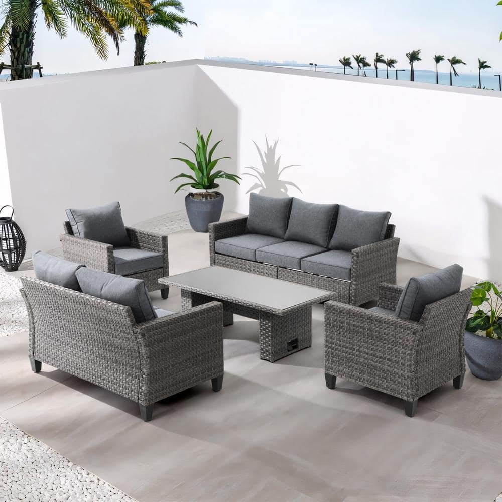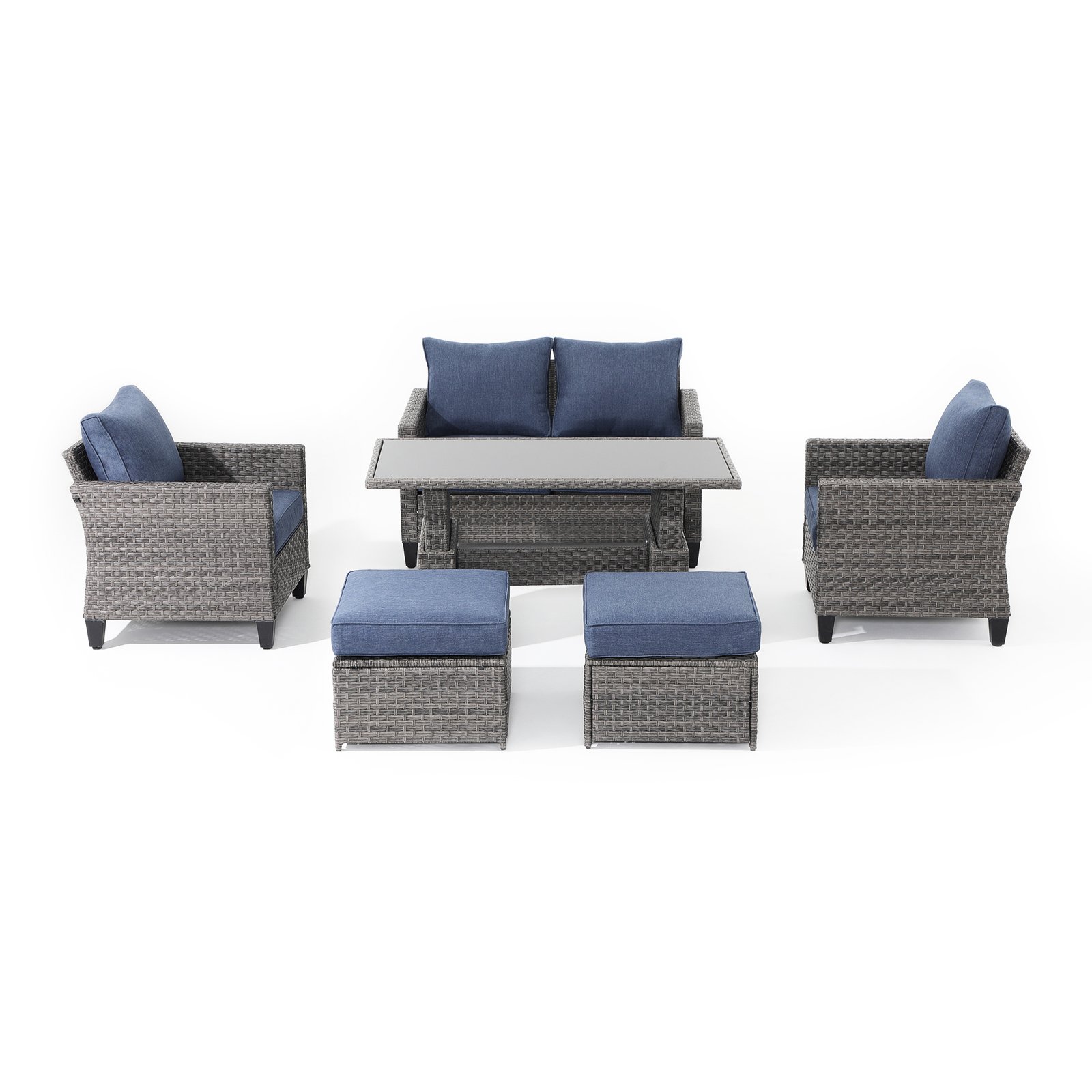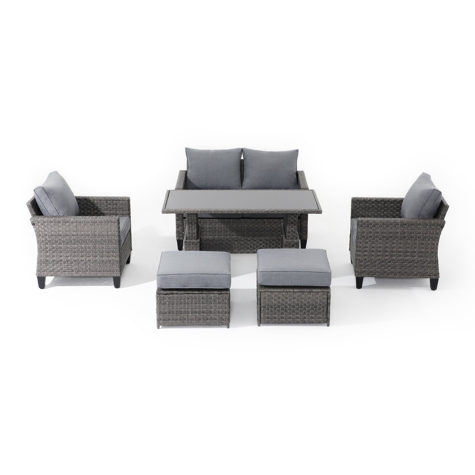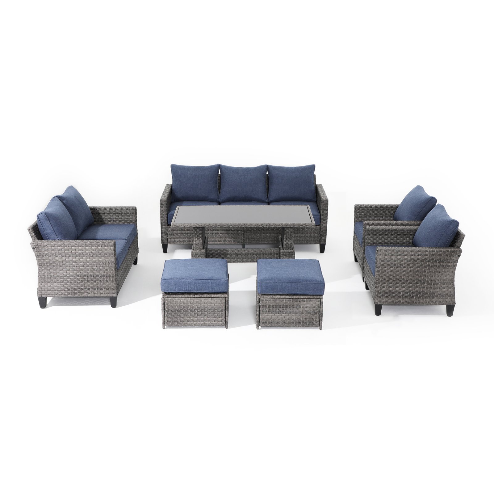 Wicker Outdoor Conversation Set with Lift-top Table Patio Sofa and Dining Table Set