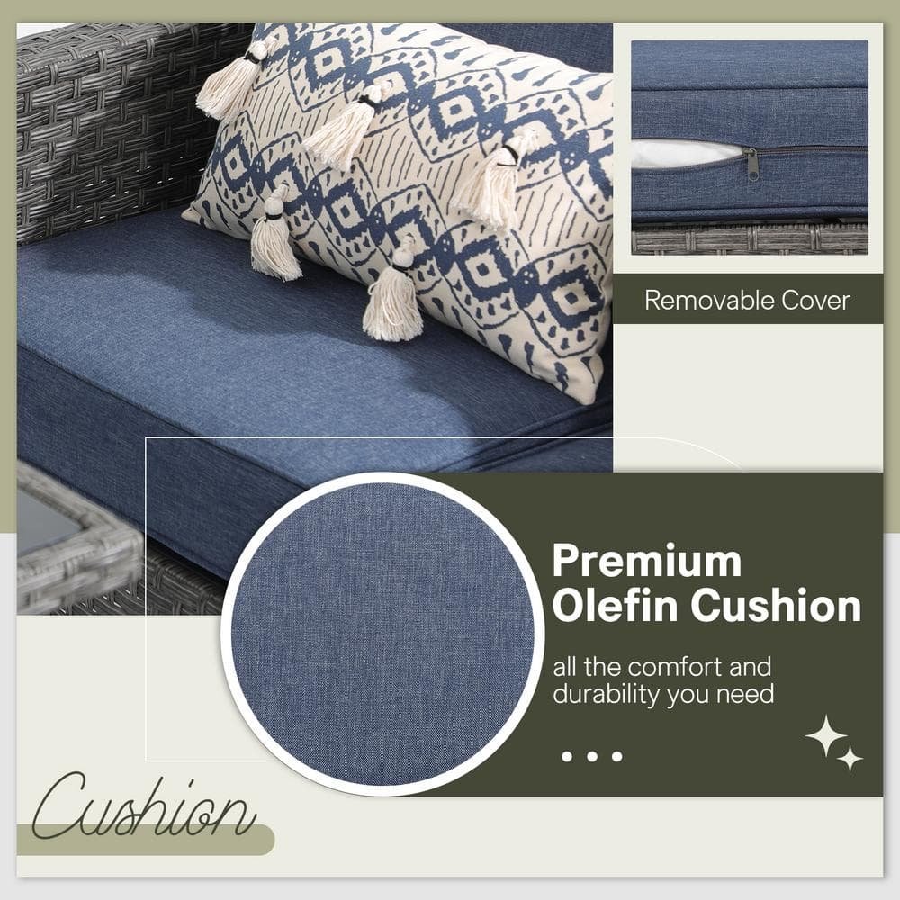 PREMIUM OLEFIN CUSHION – The patio furniture comes with cushions covered in olefin fabric which is durable and fade-resistant, equipped with thick foam for optimal comfort. Removable zip covers for easy cleaning.