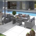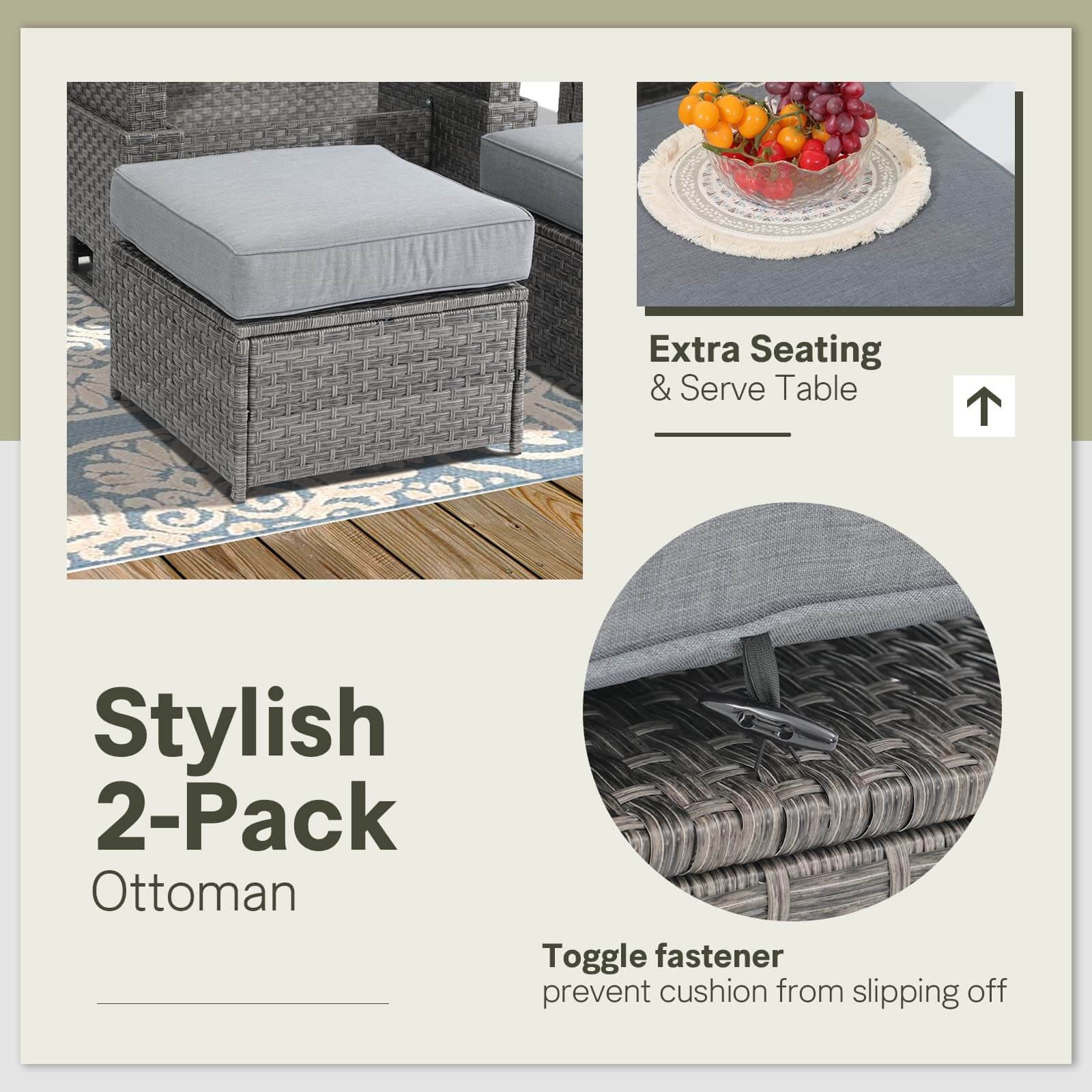 MULTI COMBINATION – Complement with elegant wicker lifting table, sectional sofas can be freely placed to fit your outdoor use and ottomans can serve as accent seating or coffee table. The outdoor dining set is designed to maximize space and accommodate up to 9 people for comfortable gatherings.