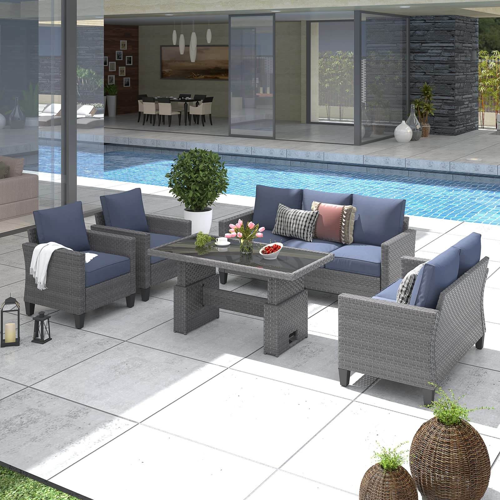 STYLISH DESIGN – Designed for long-lasting quality, the patio furniture set features a rich gray hue all-weather wicker. Curved wider chair back with a higher foot leveler is distinctive and ornamental while the matching lift coffee table offers an extra attractive look.